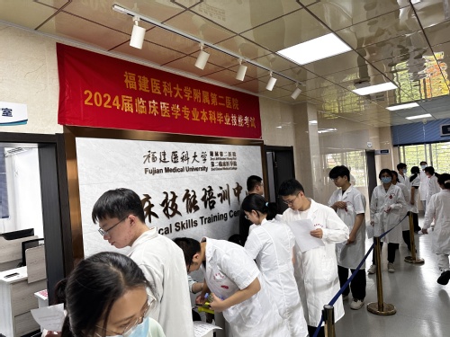 为提高考试工作效能,更好服务广大师生,在学校和教务处指导下,中心对毕业技能考试形式进行改革,首次设校本部临床技能教学中心主考场1个、福州市以外教学基地分考场7个,主考场与分考场同步开考。