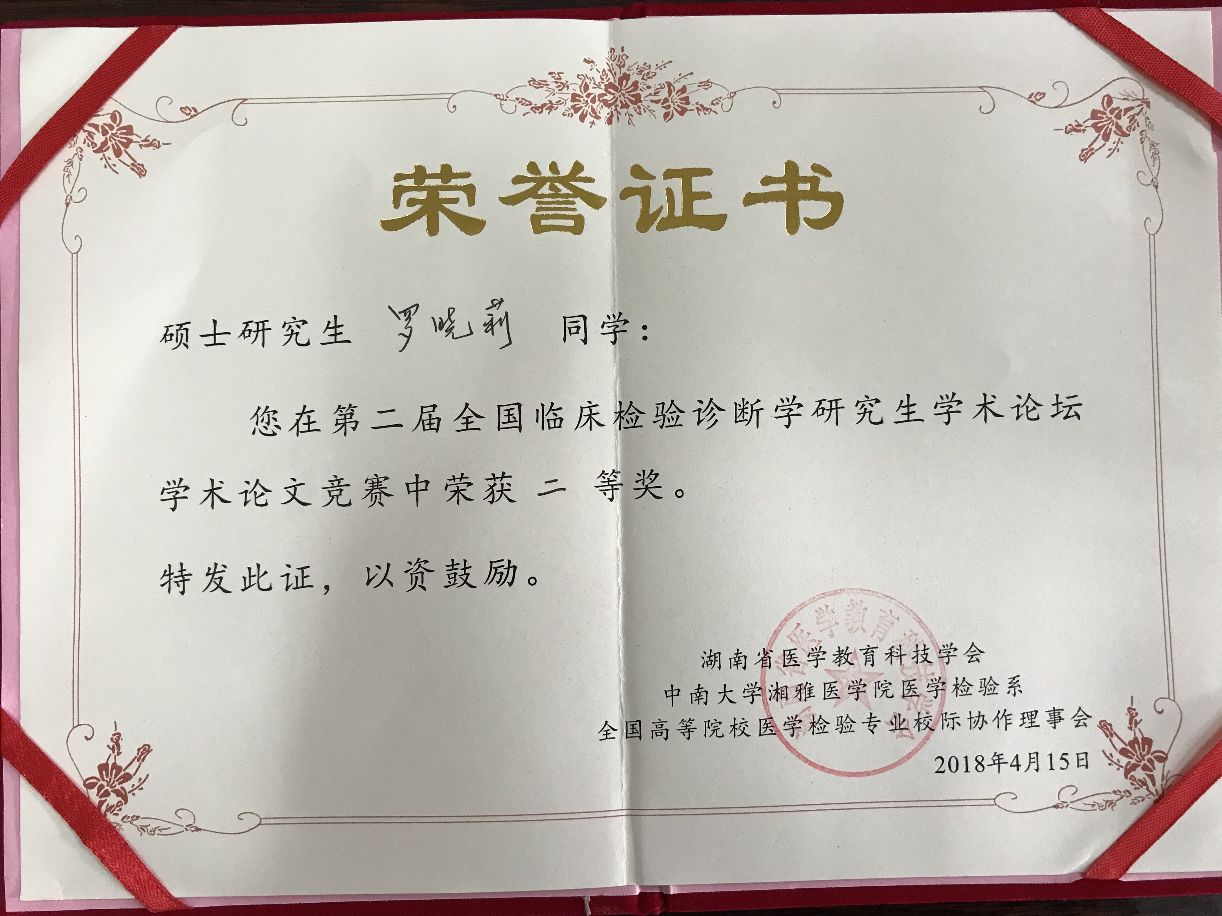 第二届全国临床检验诊断学研究生学术论坛学术论文竞赛二等奖
